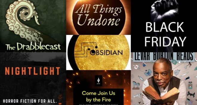 This month let’s do more than just listen to these creators, but let’s strive to support them any way possible. If you have the resources to give, pay tribute with hard cash so that these creators can continue producing stellar content. Money not your thing, share these podcasts wide and far. Make sure everyone in your network knows these creators. Bring them up in dialogue about great speculative fiction. Support, spread, and show gratitude to these amazing creators.