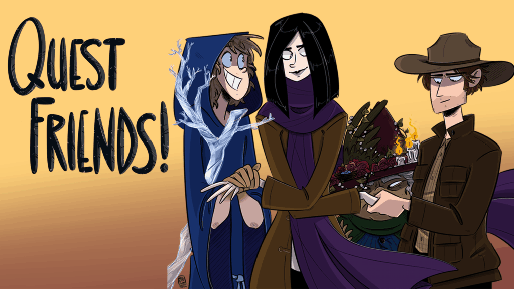 Quest Friends! is an actual play podcast created by five friends that was launched in 2017. The show concluded its first campaign in September 2021, with over 90 episodes of story and other bonus content. On their website and press kit, Quest Friends! compares itself to shows like Avatar: The Last Airbender, The Owl House, and Castle in the Sky. These comparisons are well earned, as the show is a mix of the dramatic lore building through personal character journeys.